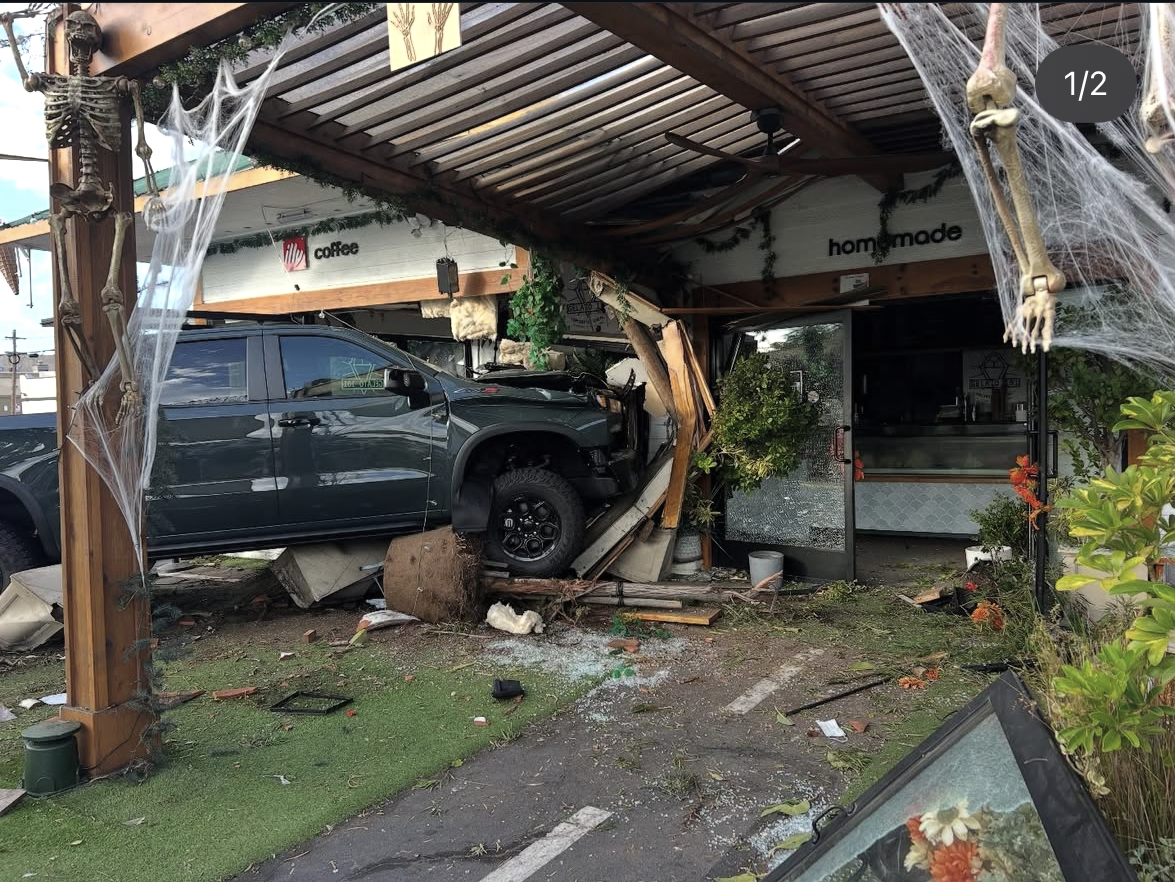 At approximately 6:00 PM on Wednesday, October 8th, a 2026 Chevrolet Silverado rear-ended another vehicle on Coast Highway 101 near D Street. The truck then veered off the roadway and crashed through the front of our Gelato 101 Encinitas shop.